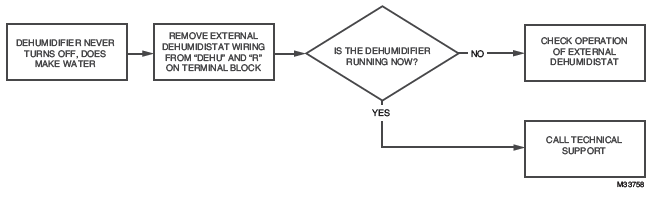 | Neither the dehumidifier fan nor compressor run when the control is calling for dehumidification. |