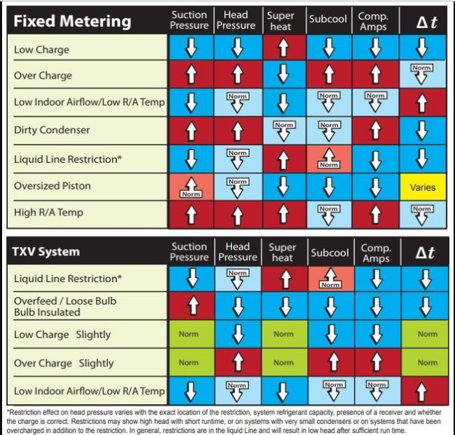 HVAC Diagnostic Chart (Fixed Metering vs. TXV System)